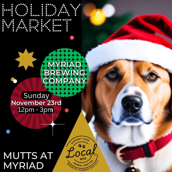 Newburgh, IN —Warrick Humane Society is spreading holiday cheer with its upcoming Mutts at Myriad: Holiday Market, a festive fundraising event benefiting local rescue pets. The event will take place at Myriad Brewing Company and promises an evening full of shopping, food, drinks, and of course—puppy snuggles!