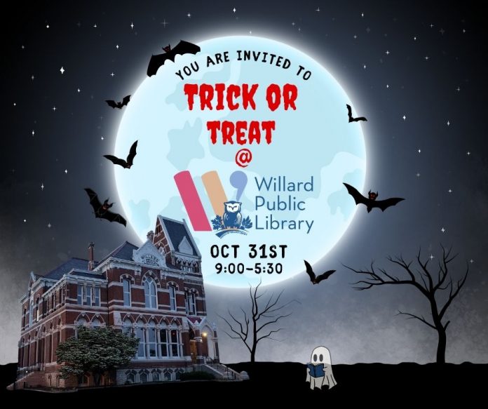 Are you looking for a safe and dry place to take your kids trick-or-treating this year? Stop by Willard Public Library for Trick or Treat @ WPL. It is the perfect addition to your Halloween plans. Children can enjoy the spooky decorations, show off their costumes, and collect candy or giveaways in every department.
