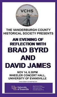 EVANSVILLE, IND. (11/03/2025) Two of Evansville’s most respected voices in journalism, Brad Byrd and David James, will share stories and insights during An Evening of Reflection at the University of Evansville (UE) on Friday, November 14, at 6:30 p.m., in Wheeler Concert Hall.
