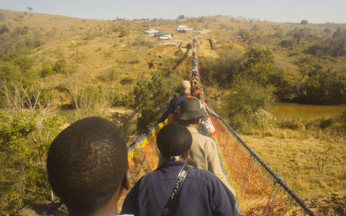 The Khelekhele suspended footbridge spans 93.5 meters across the Black Mbuluzi River, providing year-round, safe access for more than 4,250 residents. USI led the project with students from Penn State University and the University of Colorado Boulder collaborating on the construction.